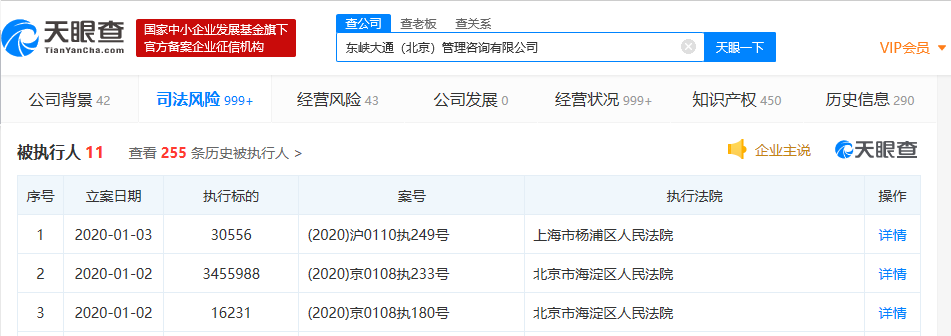 据天眼查数据显示,近日,ofo的运营主体东峡大通(北京)管理咨询有限公司新增被执行人信息3则,执行标的累计约为350.3万。东峡大通(北京)管理咨询有限公司成立于2016年10月,注册资本为15亿美元,法定代表人为陈正江,经营范围包括自行车租赁服务、通讯技术开发、产品设计等。根据其股权结构,该公司由OFO(HK)Limited全资控股。