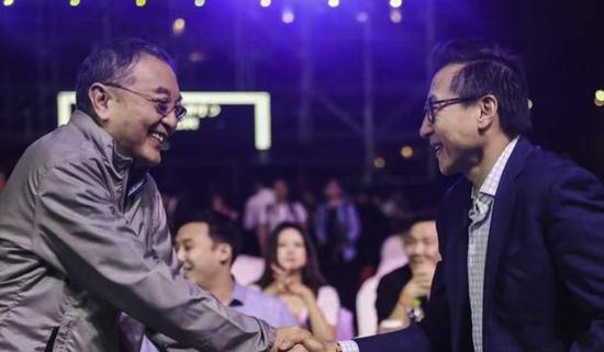 柳传志与阿里联合创始人蔡崇信握手