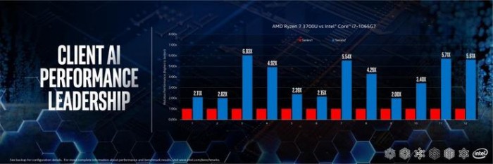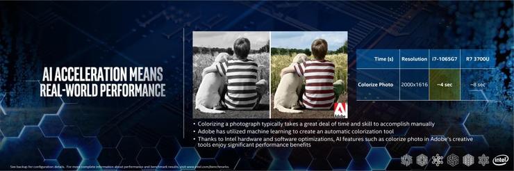 英特尔再次说明了其在AI方面的进展,并介绍了不断增长的支持AI加速的软件生态系统,例如Adobe Photoshop和Lightroom、CyberLink、Topaz Labs和Cyber Labs,更不用说英特尔自己的软件解决方案了。与最初Ice Lake发布时只有少数的应用可以支持AI加速软件相比,AI加速软件的广泛支持标志着巨大的进步。