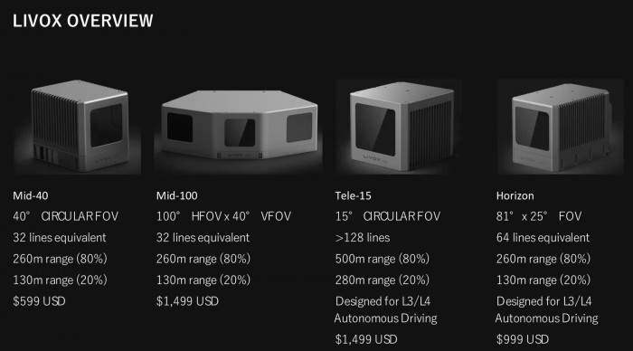 Livox已经开始生产这两种传感器,并在2020年国际消费电子展上宣布与Refraction AI和AutoX建立合作伙伴关系。Horizon的价格为999美元,Tele-15的价格为1,499美元。前者将于1月7日发售,而后者将于2020年第二季度发售。