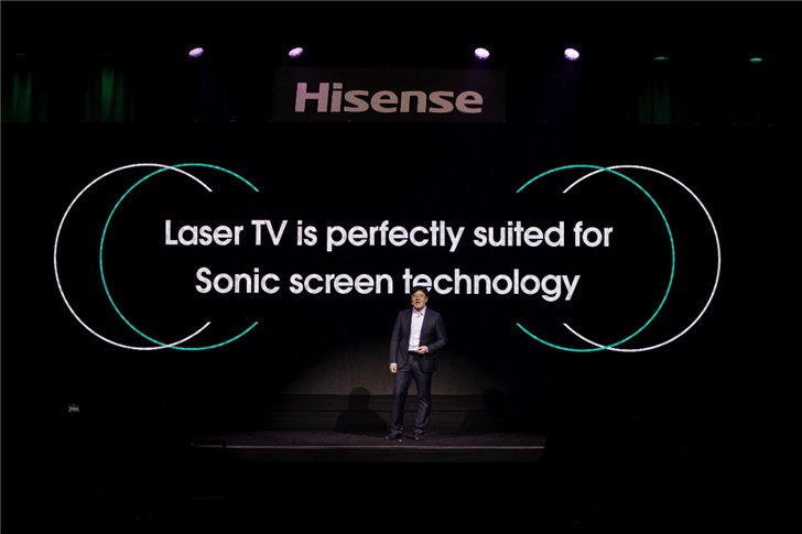 海信发布的最后一款产品是屏幕发声激光电视,据介绍,采用的是蜂窝仿生屏幕发声技术。这项技术让声音拥有更清晰定位感、更远的传播距离和更低的失真。