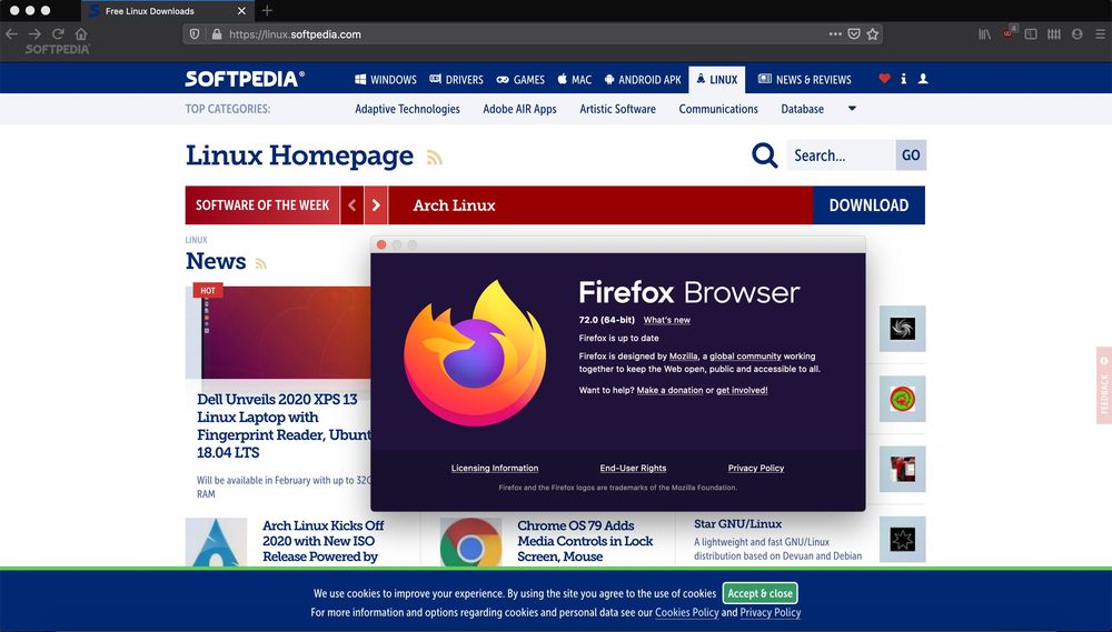 和往常一样在正式发布的前一天,Mozilla官方服务器已经放出了适用于GNU/Linux, macOS和Windows等支持平台的Firefox 72稳定版下载链接。该分支自2019年12月开始进行开发,为GNU/Linux和macOS平台引入了画中画视频控制功能,而该功能已经于Firefox 71中登陆Windows平台。