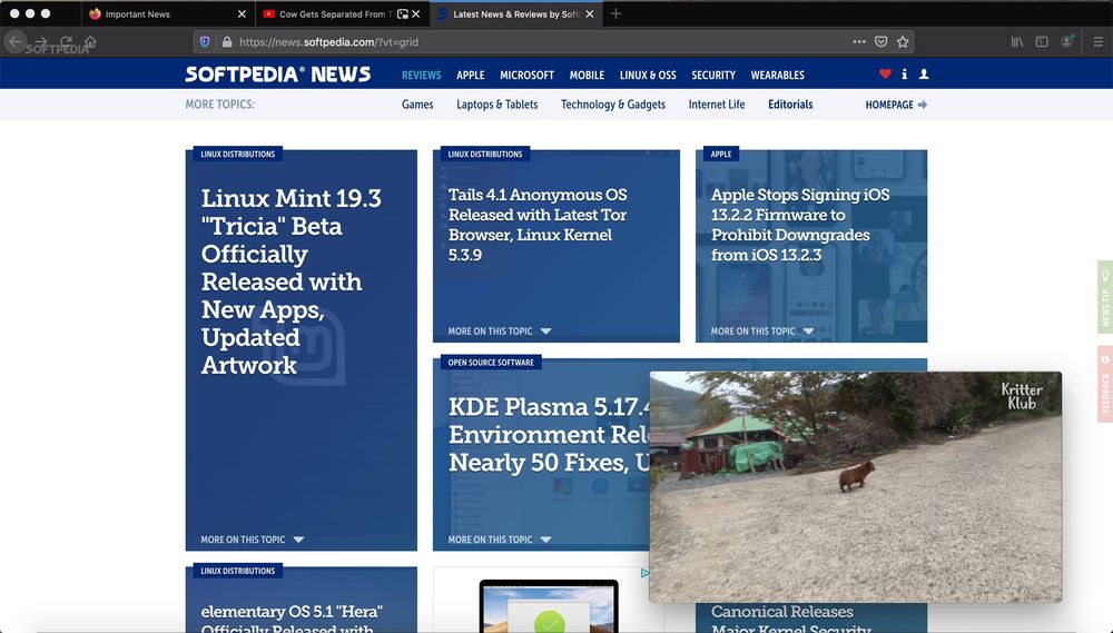 画中画模式默认处于启用状态,所以在升级至Firefox 72稳定版之后,Linux和macOS用户能以浮动窗口的形式继续观看视频,而且不影响其他标签页的浏览。