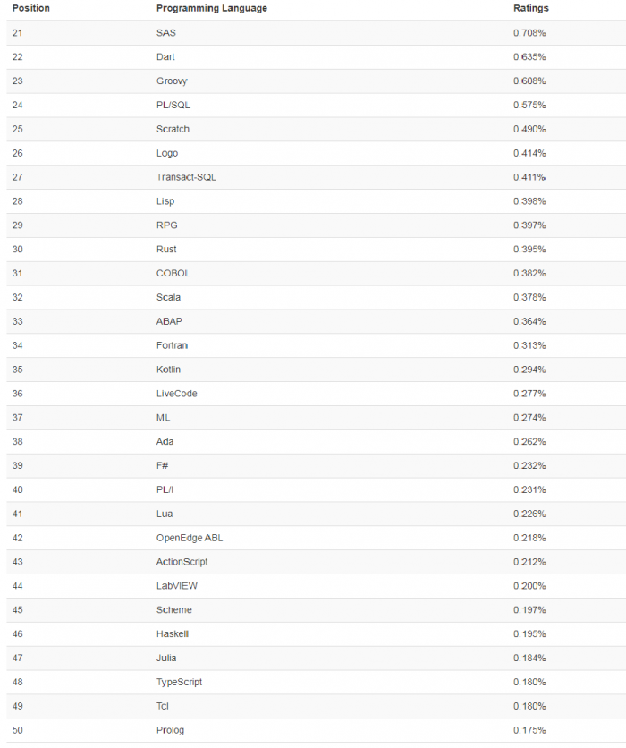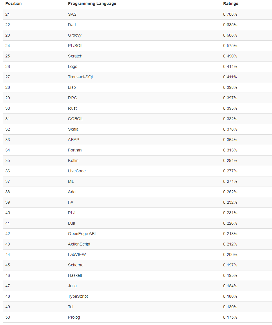 第 21-50 名的编程语言排行