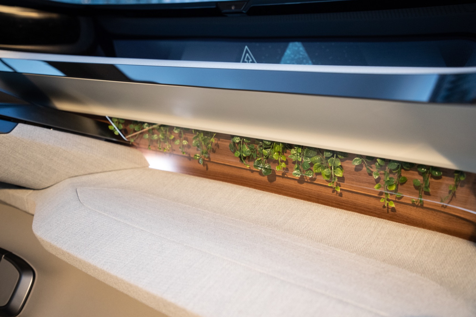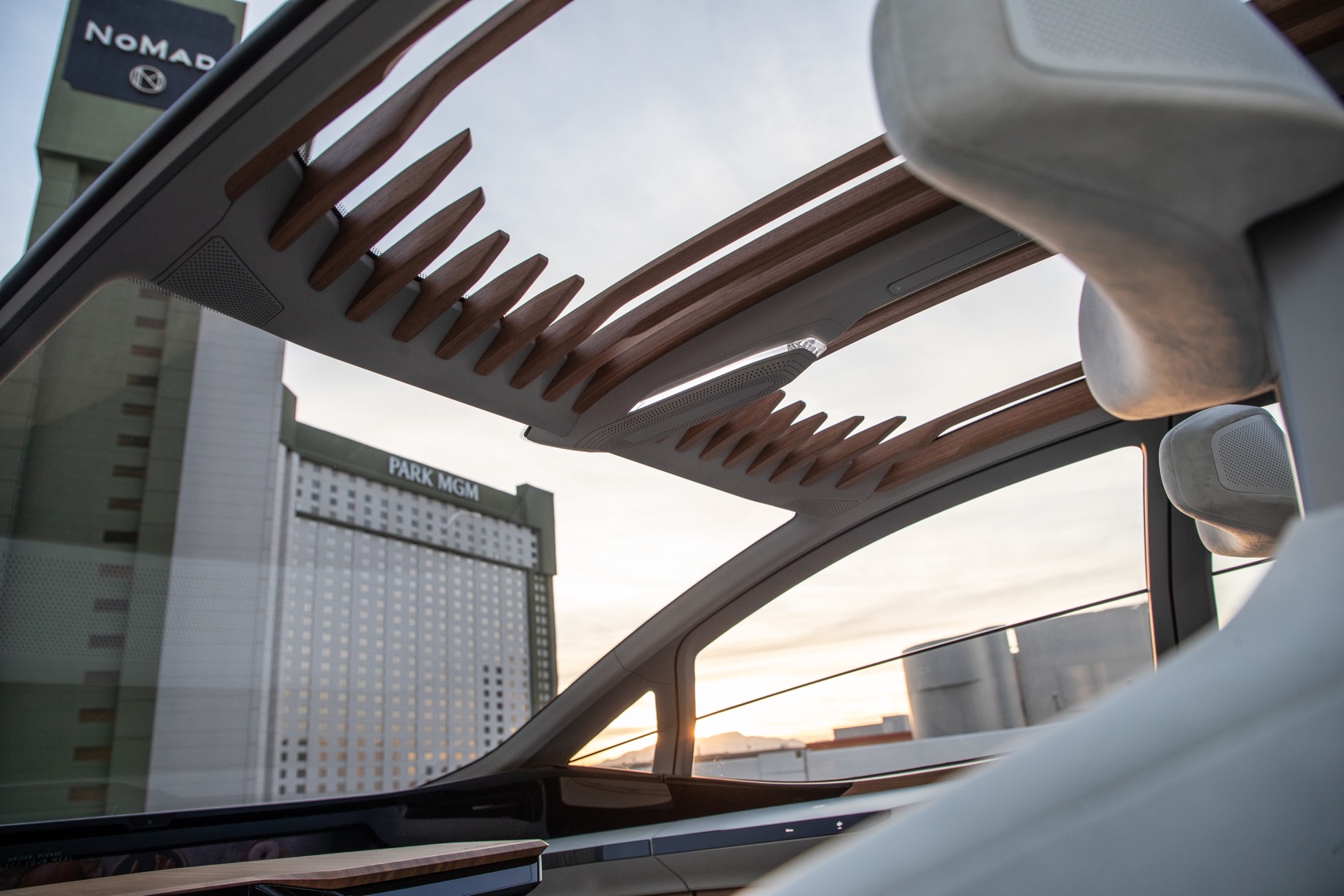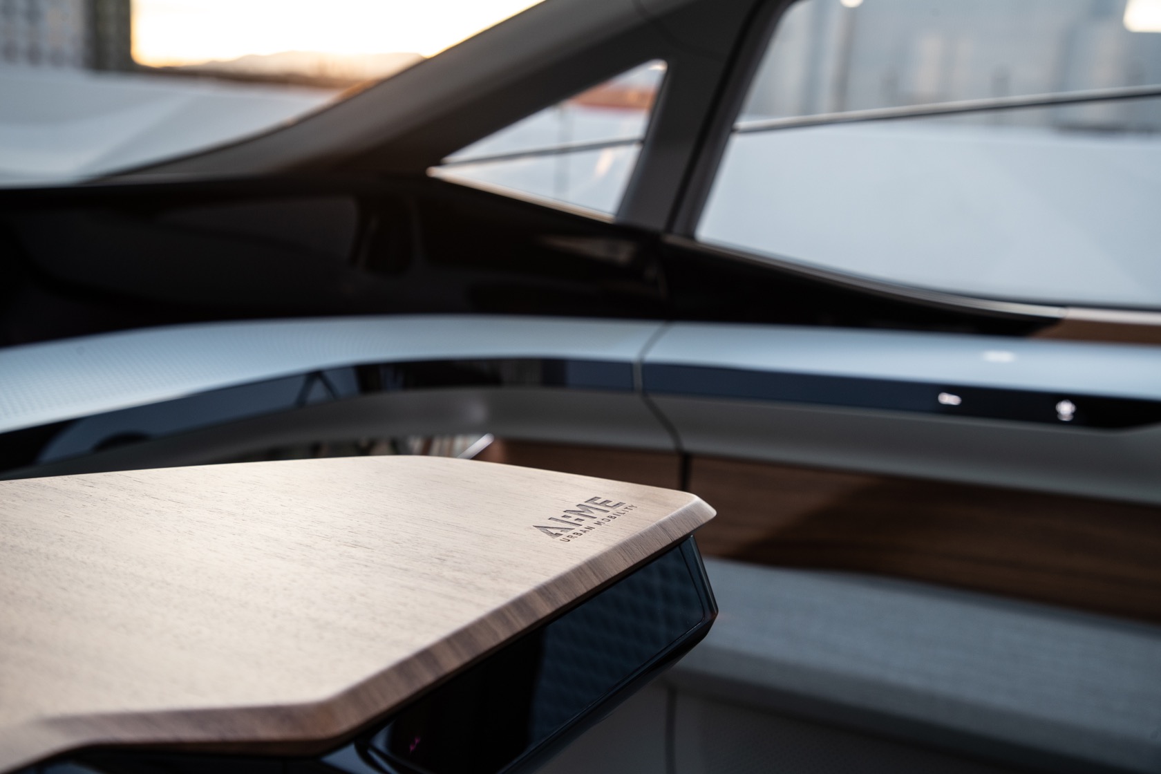 前排座位绝对是乘客最想坐的地方,这个受经典躺椅的启发的座位可以为乘坐提供相当大的舒适空间。后排座椅则围绕着客舱后部的形状呈弯曲状,其可容纳两名乘客。在设计过程中,奥迪设计师们选择了木材等天然材料以及在车顶采用了浓烈的家居设计风格从而以强化“宾至如归”的美感。