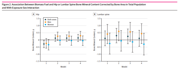重要的是,研究人员还注意到一个村庄的室外空气污染水平越高,其居民的骨矿物质含量和矿物质密度就越低。但是,骨量与使用木材等生物质做饭燃料之间没有关联。