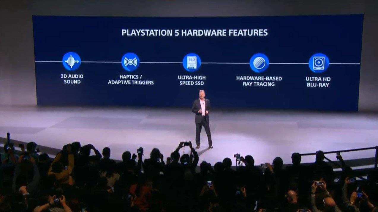 同时 PS5 的硬件特性方面被再次提及,其中会包含 3D 音频、触觉/自适应扳机、超高速 SSD、硬件支持光线追踪、超高清蓝光等。其中超高速 SSD 已在此前被大肆宣传,猜测 PS5 将支持 PCle 4.0 的 SSD,从而实现更快速的游戏读取速度。