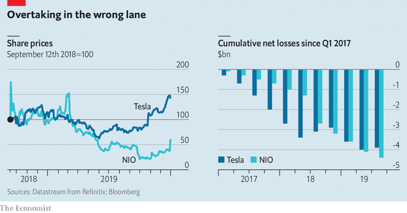 不过,汽车行业咨询公司Sino Auto Insights的涂乐(Tu Le,音译)表示,蔚来扼杀特斯拉的野心过大。它鲁莽地认为,自己能够迅速与一家比自己大11岁、拥有巨大全球品牌认知度和多款车型的电动汽车公司相竞争。蔚来2019年的营收估计在12亿美元左右,与特斯拉240亿美元的营收相比相形见绌。然而自2017年初以来,其累计亏损已超过特斯拉。蔚来在拥有图书馆、咖啡店和托儿所的会员俱乐部里大肆挥霍,有时甚至直接把蔚来中心设在特斯拉展厅的街对面。但与特斯拉不同的是,其并没有在汽车制造上投入太多资金,而是将生产外包给了国有汽车制造商江淮汽车。