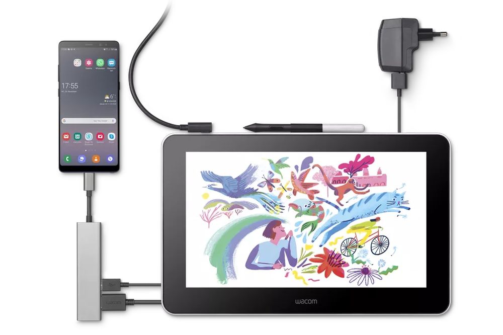 即使在没有笔记本电脑的情况下,用户也能通过Android手机来使用Wacom One。在连接手机之后,就能运行诸如 Autodesk SketchBook等插图应用程序。Wacom One依然使用HDMI / USB / power三端口,且不支持USB-C端口,因此需要额外购买扩展坞才能连接较新的MacBook和Android设备。