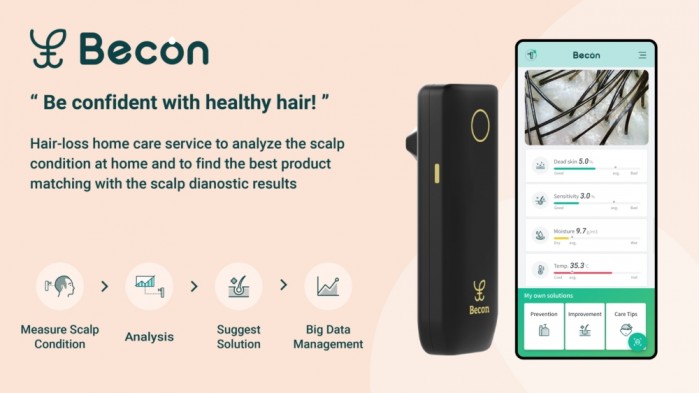 在CES 2020上,一家名为Becon的创业公司(来自于三星的内部孵化器计划Creative Lab)带来了一款相当令男士感兴趣的产品——头皮扫描仪。Becon头皮扫描仪是为那些担心脱发但没时间询问专家的用户准备的,它分为两部分,分别是一款可以检测头皮的手持设备,和一个配套的APP。