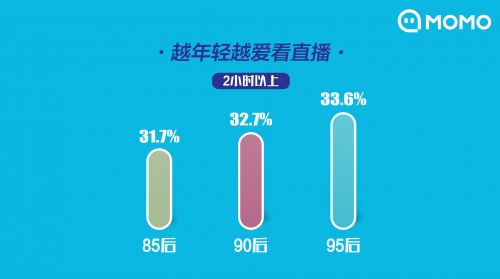 1月8日,国内领先的移动社交平台陌陌发布了《2019主播职业报告》,通过对近万名移动网络用户,主播的抽样调查发现:33.6%的95后每天看直播超2小时;近8成用户会为直播付费,24.1%的职业主播月收入过万; 11.8%的95后主播为父母买房。