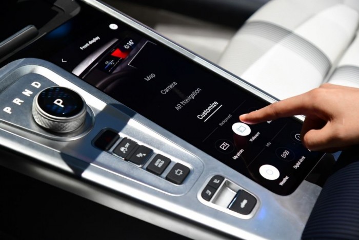 驾驶座椅前方与侧方配有屏幕,驾驶室中间的屏幕则显示一切信息。屏幕为12.4寸,支持脸部识别和智能手机指纹认证,以My Page的形态提供信息。用2个数码节点来进行音乐选曲等,用其下方用控制台显示器可以实现控制车内、外部的显示屏。每个座椅头部位置装有扬声器,没有耳机也可以欣赏音乐。仪表盘装有28.3英寸LED,可以方便驾驶人员识别通知和警告等。