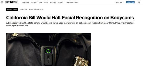 2019年09月13日,美国加利福尼亚州议会通过一项为期三年的议案,禁止州和地方执法机构在执法记录仪上使用面部识别技术。该议案已被州长加文·纽森签字通过,于2020年1月1日生效成为加州法律。