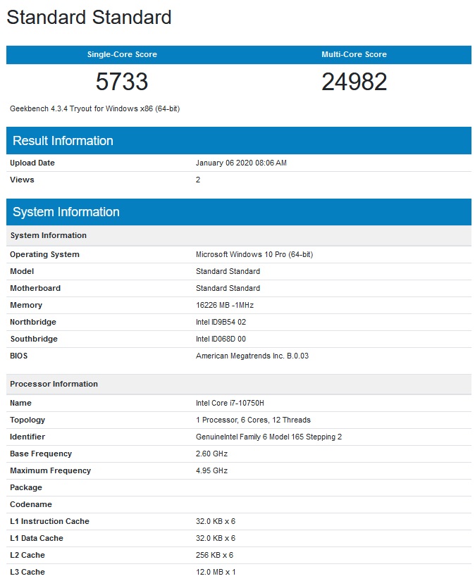 目前,GeekBench上已经曝光了酷睿i7-10750H、酷睿i5-10300H等产品。