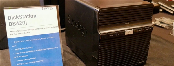 在本次CES 2020上,群晖(Synology)带来了面向个人和家庭用户的新入门级NAS产品DiskStation DS420j。DS420j应该是现款DS418j的升级,两者在外形上几无差别,包括正面的按键和背部的双风扇。