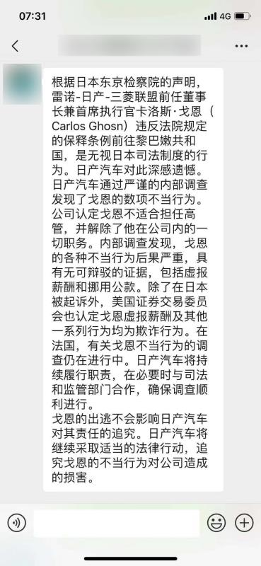 根据日本东京检察院的声明,雷诺-日产-三菱联盟前任董事长兼首席执行官卡洛斯·戈恩(Carlos Ghosn)违反法院规定的保释条例前往黎巴嫩共和国,是无视日本司法制度的行为。日产汽车对此深感遗憾。