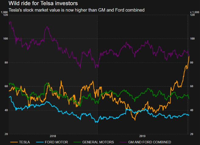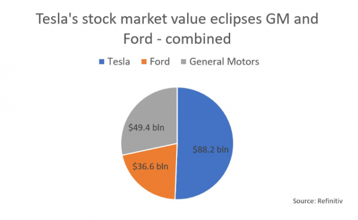 特斯拉市值超过通用和福特两家公司的总和