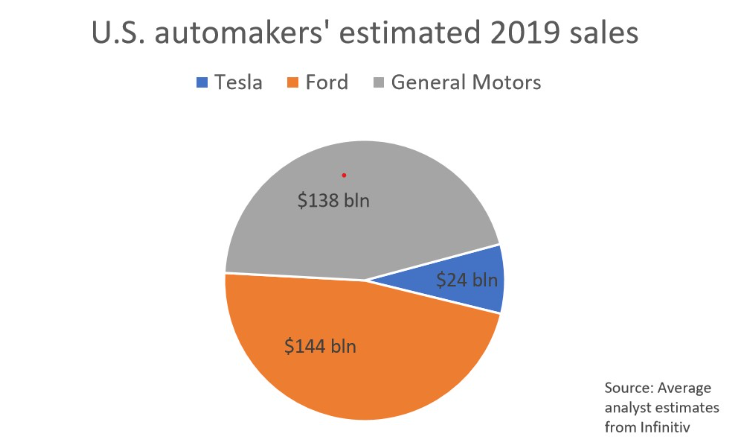 特斯拉市值远高于通用和福特的市值