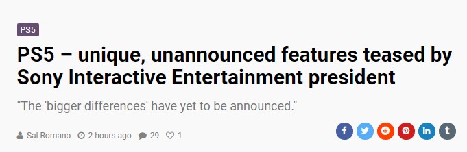 但是你知道。 PS5还有更多与它的前辈们不一样的独特元素,这些‘更大的差别’我们还没有公布呢。”