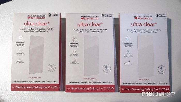 三星Galaxy新品发布会将于北京时间2月12日凌晨3点举办,从发布会预热视频来看,Galaxy S20系列和Galaxy Fold 2均有望登场。在本届CES上三星虽然没有透露新机细节,可“队友们”已经按捺不住。有外媒在展会期间发现了配件厂商为三款S20系列新机准备钢化贴膜,证实它们均采用中央开孔屏设计,尺寸从小到大分别是6.2寸、6.7寸和6.9寸。