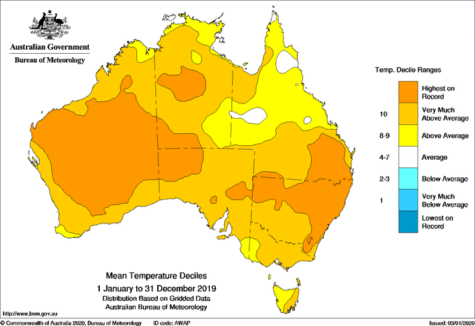 澳大利亚2019年的平均气温图