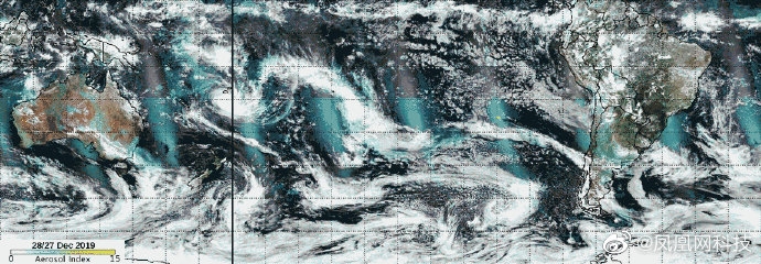 在卫星云图上,澳大利亚国土如同一块赤红的火炭,大火造成的浓烟清晰可见。