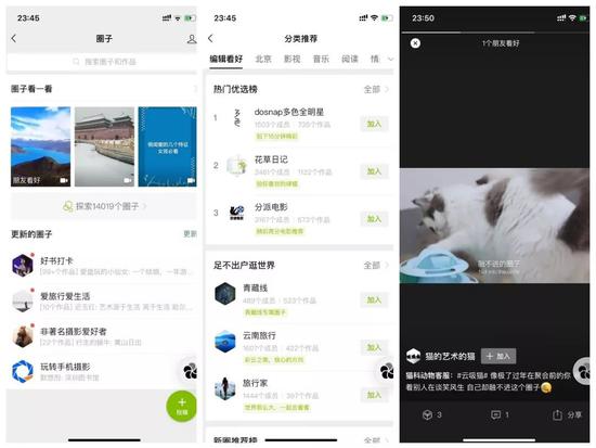 2019年3月,微信上线“好物圈”,被认为要打造一个购物版的朋友圈,用户可以在其中浏览朋友推荐的物品,进行互动,交流心得。而此后,好物圈演化成“微信圈子”,成为一个融合图片和短视频的内容平台。官方数据显示,目前微信圈子的数量超过14000个,类别亦十分广泛。