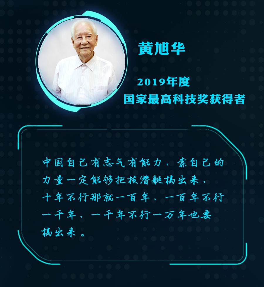 2019年度国家最高科学技术奖得主 黄旭华:任何一点结构、材料、设备达不到(极限深度海水压力的)要求,都有可能就艇毁人亡。我说我下去,万一在试验过程当中发生了哪种不正常的现象,我会及时地协助艇上研究,采取措施。作为总师,我要为这一百几十个人的生命安全负责到底。