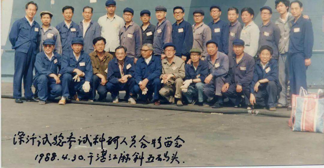 黄旭华(后排左一)同参与深潜试验的科研人员合影