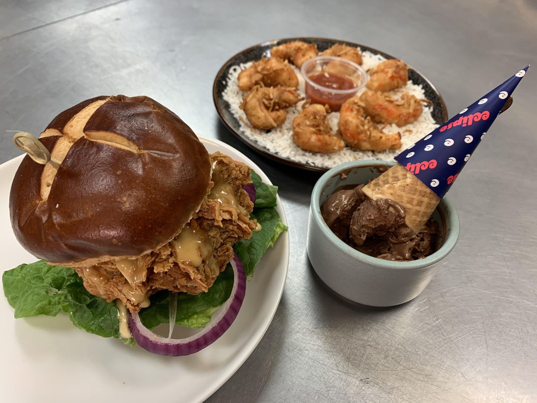 Van Cleve Seafood Company是另一家人造肉公司,其提供了一种非常实用的替代肉类:虾。在其Wild.Skinny.Clean品牌,这家公司推出了各种各样的人造虾肉产品,还有一款无蟹蛋糕。Van Cleve总裁Monica Van Cleve-Talbert为外媒CNET的记者提供了一些椰子虾样品供他们品尝。