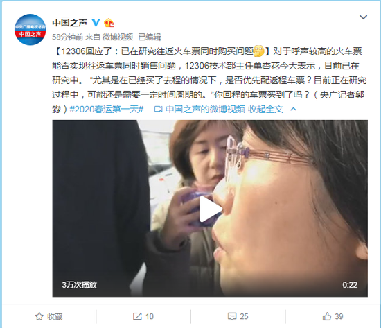 值得一提的是。12306方面还表示,尤其是对于在已经买了去程的情况下,是否优先配返程车票?目前正在研究过程中,可能还是需要一定时间周期。