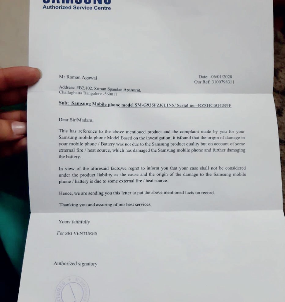 除了向警方报警外,Galaxy S7的拥有者还与三星联系,但是三星对外表示:“根据调查,发现手机/电池损坏的根源不是三星产品的质量,而是由于某些外部火/热源损坏了手机,并进一步损坏了电池。“ 对此,Seema Agarwal家人说,他们现在正计划对三星提起诉讼。
