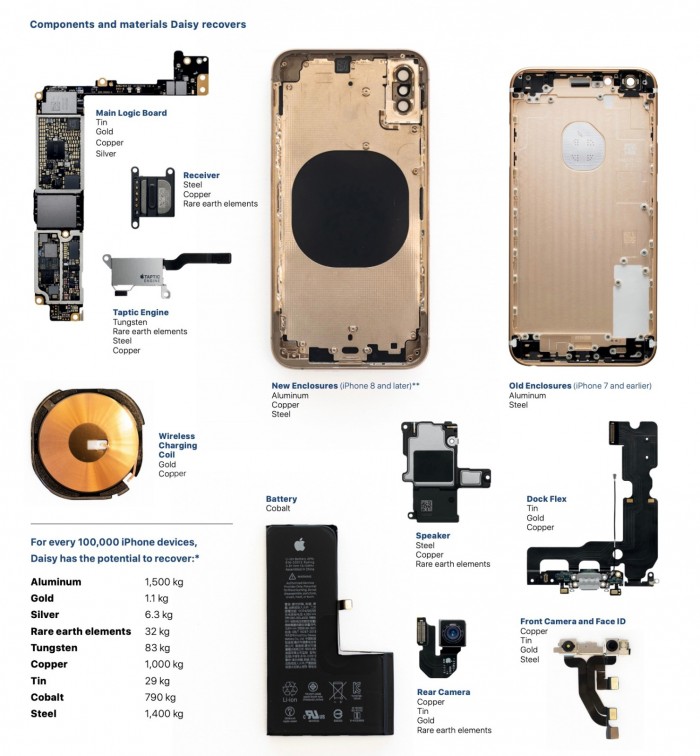 随后,介绍了苹果的回收过程,将回收的产品进行机械拆除,回收金属,地球稀有金属,铝等等。
