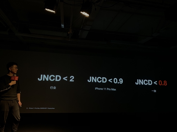 不仅如此,一加屏幕的色准标准最高,JNCD<0.8,比iPhone 11 Pro Max(JNCD<0.9)和行业(JNCD<2)更好。