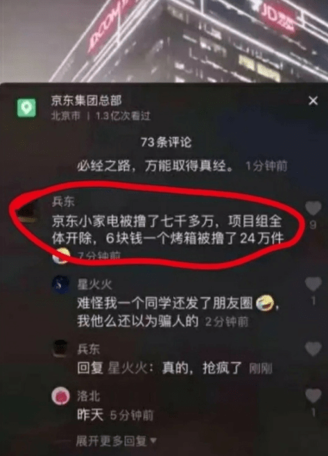 此前,网上有消息称,京东在近日推出一个优惠活动中,原先需要满千元才能使用的200元满减优惠券被项目组设置成无门槛,导致羊毛党疯狂下单。大量200元左右的小家电被一扫而空,其中仅一款烤箱就被下单24万次,到手价仅6元,京东一夜之间被撸实际商品总额达到7000万元。