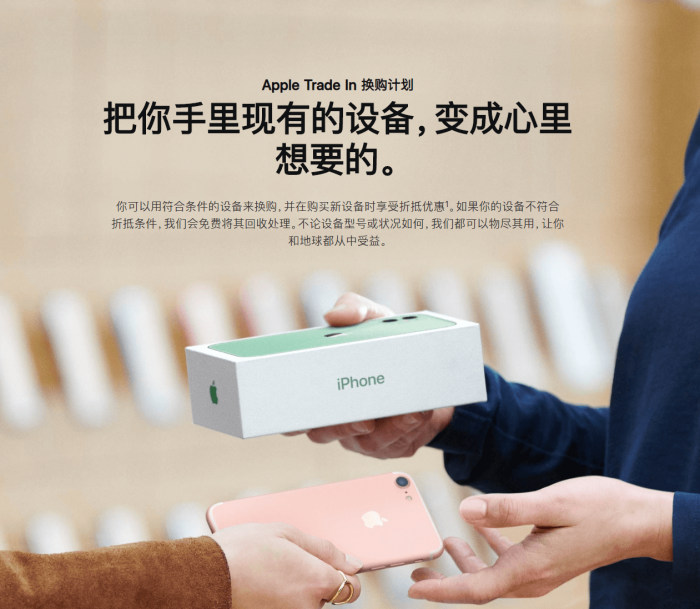 尽管回收和以旧换新长期以来一直是苹果提供的服务之一,但“Apple Trade In 换购计划”确实在今年获得了苹果的更多支持,你可以在 Apple 官网或者 Apple 零售店,甚至广告牌上看到有关于这项计划的宣传,而且也取得了不错的效果。