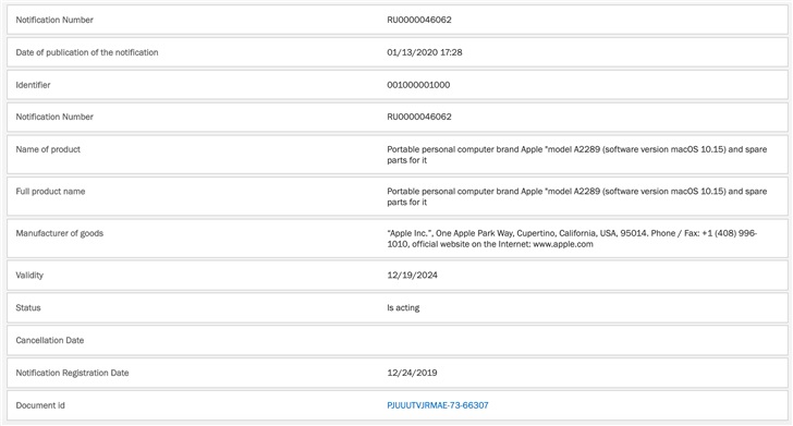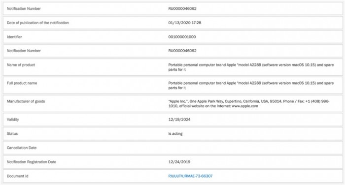苹果今天在欧亚经济委员会递交了一份申请,申请中是一台型号为 A2289 的 Mac 电脑。这台电脑搭载的系统为 macOS 10.15。根据之前的经验,欧亚经济委员会数据库已经多次成功预测了即将发布的新产品,包括 Mac、iPhone、iPad、iPad Pro、Apple Watch 和 AirPods。