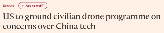 1月13日,英国《金融时报》及《金融时报》中文网接连报道称,美国最大民用无人机项目之一将遭特朗普政府永久停飞,就因为所使用的设备至少部分是中国制造。
