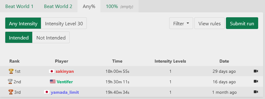虽然上面Adam的成绩已经足够惊人,不过该记录已经被打破。有一名14岁日本玩家さきにゃん全程没有作弊动作,设定运动强度1,耗时18小时零59秒通过《健身环大冒险》全部23个世界,并打败了堕拉贡。