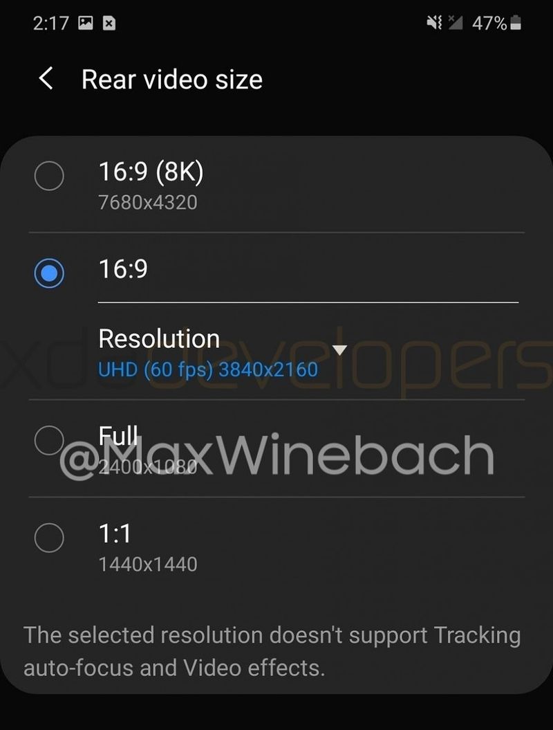 正如此前所报道的,从Samsung Camera应用程序中找到的代码和字符串证明三星正积极引入对8K视频的支持。现在该外媒再次确认Galaxy S20+确实支持8K @ 30fps的视频录制。