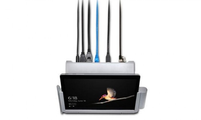 公司进一步表示:“利用独特的铰链技术,计将Surface Go调整到最佳位置。SD6000是安全协议的办公室、PoS网点、值机柜台、移动岗亭、教育环境会议室的理想选择。”