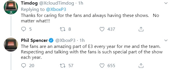 Phil Spencer 在 Twitter 中表示,Xbox 的团队在为 E3 努力工作,他们非常期待能与所有喜爱 Xbox 游戏的玩家们一同分享,Xbox 的艺术形式一直在被创新和技术的进步所推动。最后 Phil Spencer 也说到:“2020对于 Xbox 团队的旅程来说,将是具有里程碑意义的一年。”