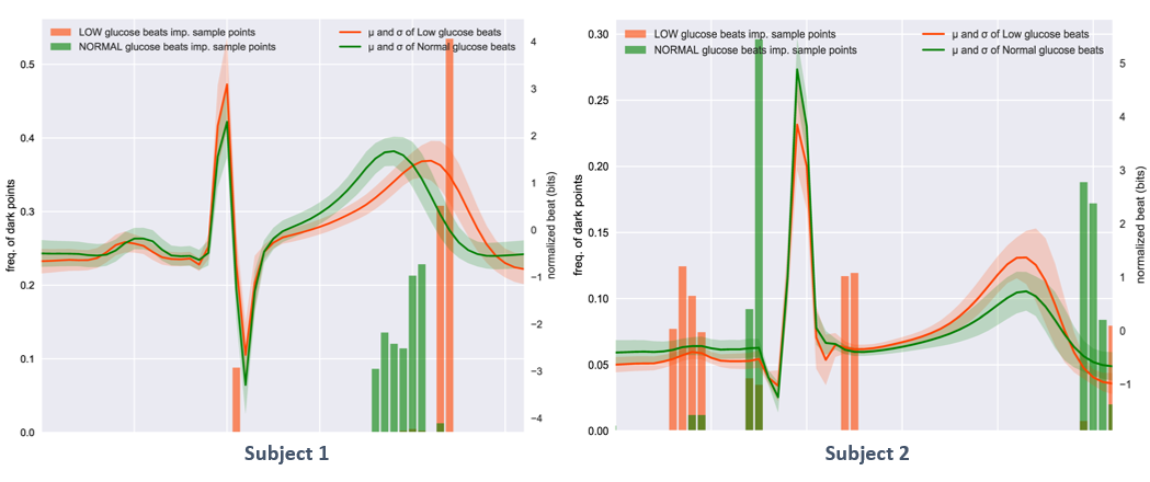 如下图所示,两名受试者之间发出低血糖信号的ECG测量结果可能完全不同,这意味着唯一的出路是开发一种AI系统来检测每个患者的个性化波动。
