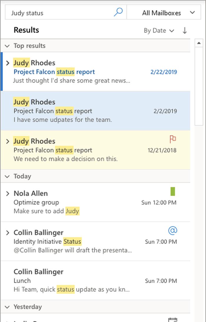 本次更新中Outlook也带来了一些改进。首先,用户能够在不同收件箱中查找邮件。使用搜索栏时,“所有邮箱”选项现在支持“最佳结果”,它会显示最相关的搜索结果。另外,组织现在可以标准化组名称,从而更容易识别命名约定并在组织内查找所需内容。