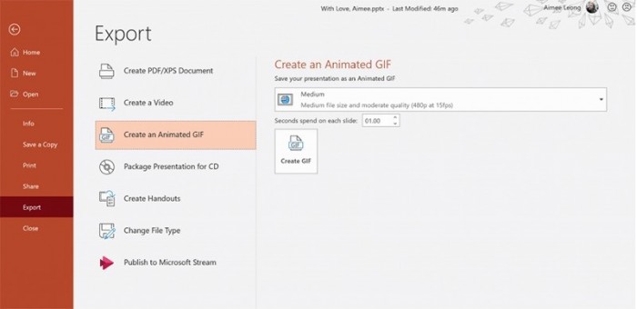 面向Monthly Channel (Targeted)通道的Office Insider项目成员,微软于今天发布了预览版更新,应用升级至Version 2001,Build版本号升至12430.20050。本次版本更新中最值得关注的就是为PowerPoint添加了一项新功能,允许用户基于幻灯片来创建GIF动图。用户可以创建幻灯片,添加媒体,文本和动画,然后将结果导出为GIF,并具有不同的质量和文件大小设置,此外该动图还能包含1张以上的动图。