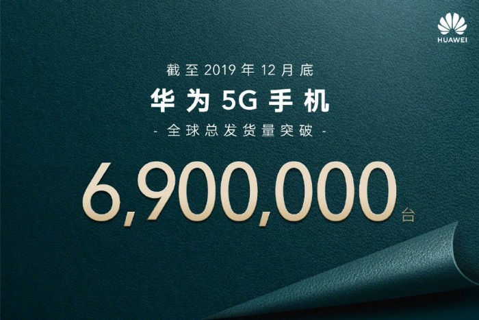 1月14日消息,今日华为官方宣布,截至2019年12月底,华为5G手机全球总发货量突破690万台。2019年12月31日,余承东在2020新年信中表示,预计2019年华为智能手机全年发货量将超过2.4亿台,稳居全球第二,超额完成年初目标。