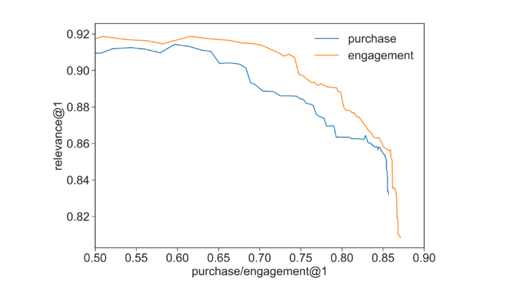 正如上图所示,相关性和购买水平/参与水平之间存在权衡:提高或降低关联性将会影响购买水平/参与水平的表现。