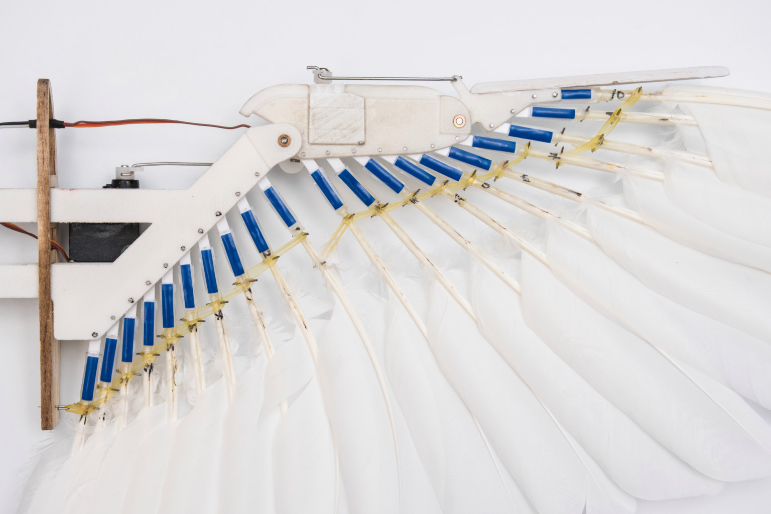 对此,机械工程教授David Lentink向他的一些研究生提出挑战,要求他们剖析鸟类翅膀变形机制的生物力学并将这些见解体现在一个具备真实飞行羽毛的变形生物混合机器人上,另外还要以普通鸽子为模型。