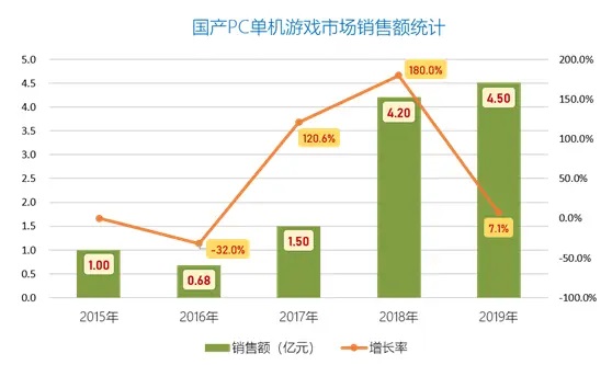 2019年,独立游戏发行数量不可避免地迎来了下跌,为368款,少于2018年428款,与2017年相近。但相对更早之前,如2016年的170款、2015年的33款,还是不可同日而语。另外按照《国产PC单机游戏市场销售额统计》,2019年国产PC单机游戏收入4.5亿,其实略高于2018年的4.2亿元。