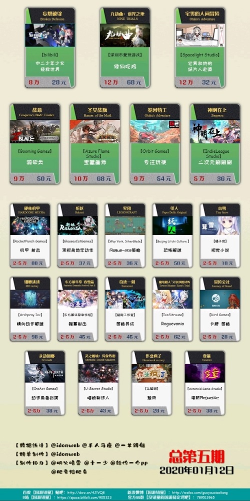因此,榜单的意义更多并非是具体数字,而是数字大致分布区间,揭示了2019年国产独立游戏“青黄不接”的事实。